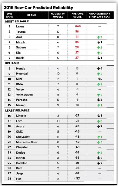 According to Consumer Reports’ 2015 Annual Auto Reliability Survey, Kia finished sixth, the highest ranking Kia has ever received in that survey, two notches above Honda (8th place).