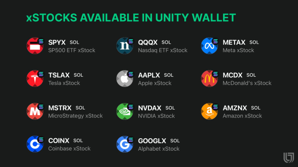 Unity Wallet continues to support this emerging wave of DeFi and Web3 investments. The platform plans to add more xStocks in the upcoming weeks and months, offering users greater diversification opportunities.