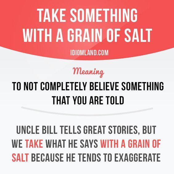 What does "TAKE SOMETHING WITH A GRAIN OF SALT" mean?