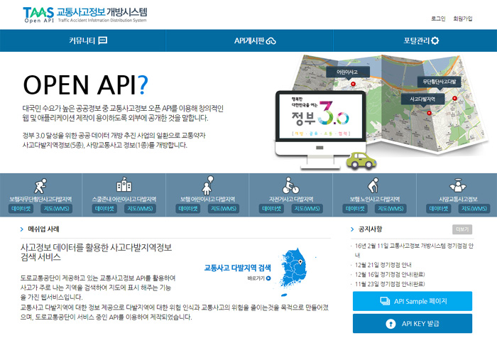 Take, for example, traffic accident data. Nearly 20,000 datasets of the National Police Agency’s data on fatal traffic accidents and the Korea Road Traffic Authority (KoROAD)’s data on accident-prone areas have been disclosed through open APIs and map services. The 2,000 datasets include locational data concerning Type 1 vehicles’ traffic accidents and data on accident-prone areas for Type 5 vehicles.